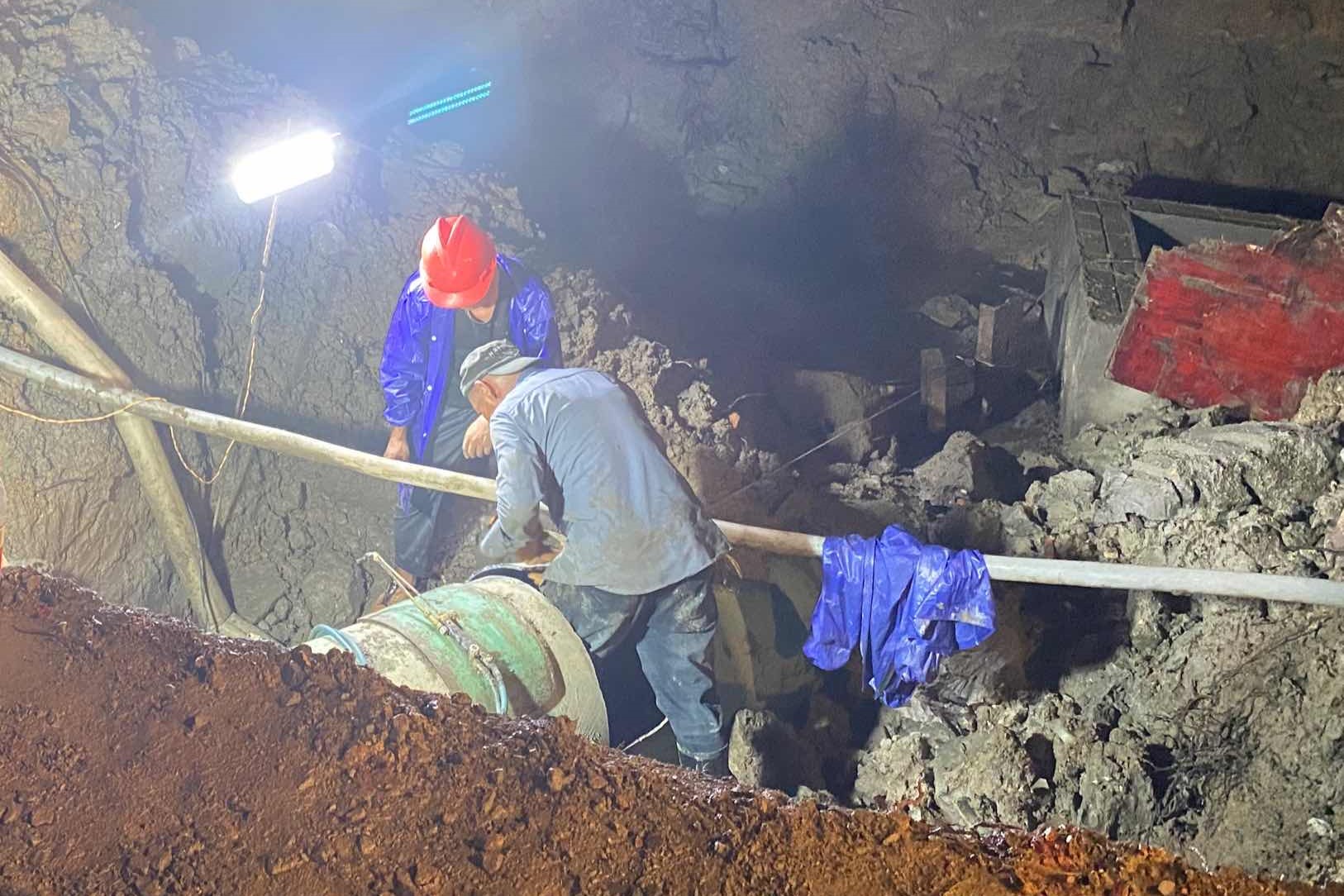 雨夜“不打烊” 施工10小時(shí),完成DN600供水管接頭沖洗